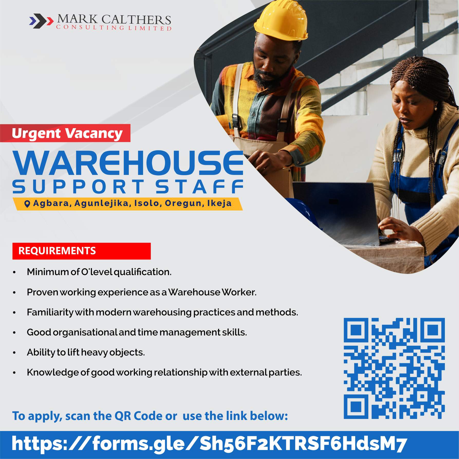 Warehouse support staff are responsible for the day-to-day operations of a warehouse. This includes receiving and storing goods, picking and packing orders, and shipping products to customers. Warehouse support staff must be able to work independently and as part of a team. They must also be able to follow instructions and work safely in a fast-paced environment. Agbara, Agunlejika, Isolo, Oregun, Ikeja.